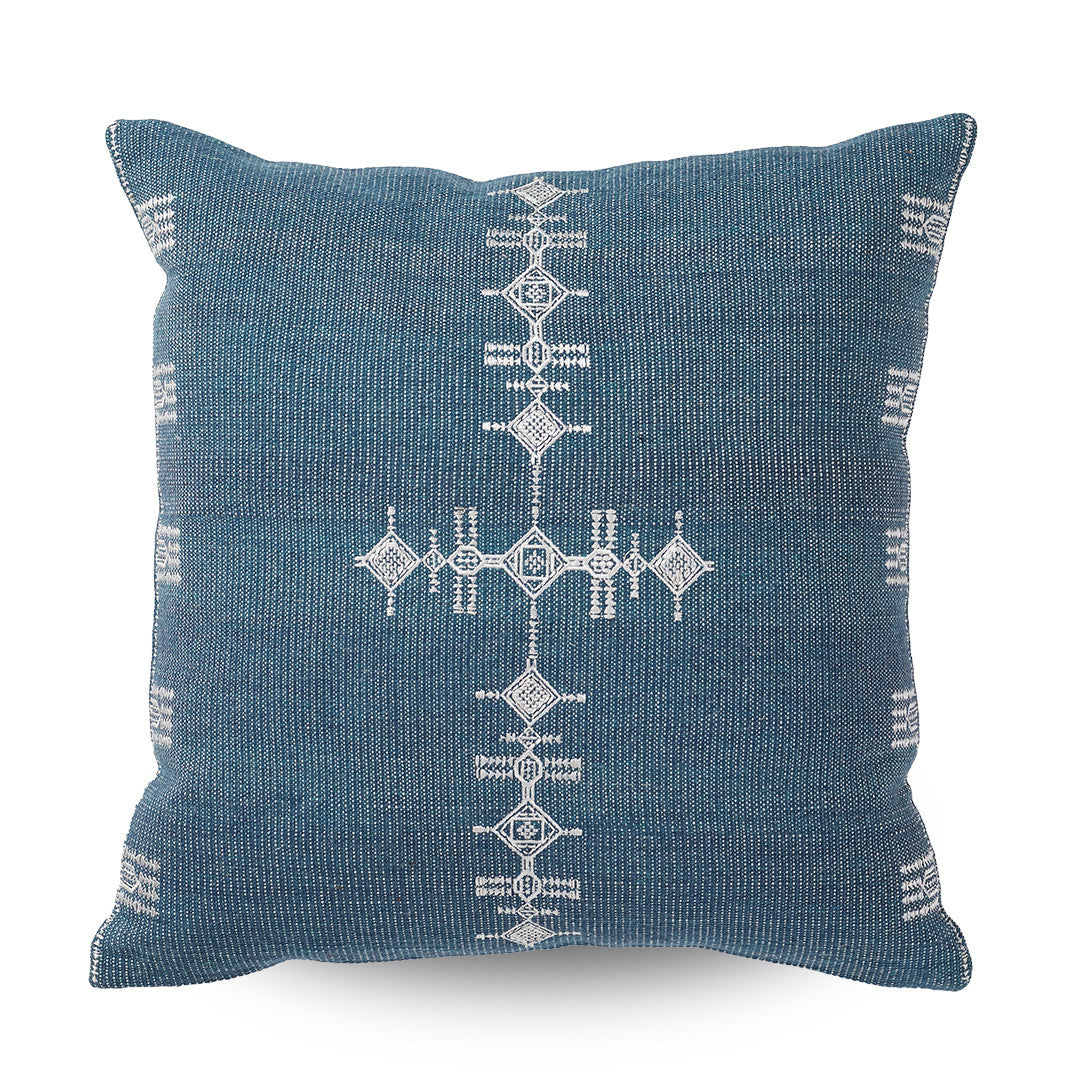 The Coast cushion Cover Navy is a classic woven textured cushion with a striking embroidered motif in pearl.